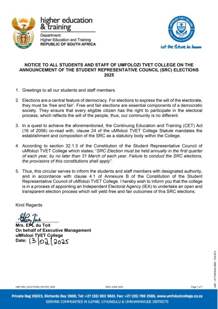 On 20 November 2024, the Deputy Minister of Higher Education and Training, Mr. Buti Manamela, officially launched and handed over the Ingwavuma Skills Development Centre to uMfolozi TVET College. This Centre is a collaborative effort between the Department of Higher Education and Training (DHET) and the Construction Education and Training Authority (CETA). It is well-equipped…