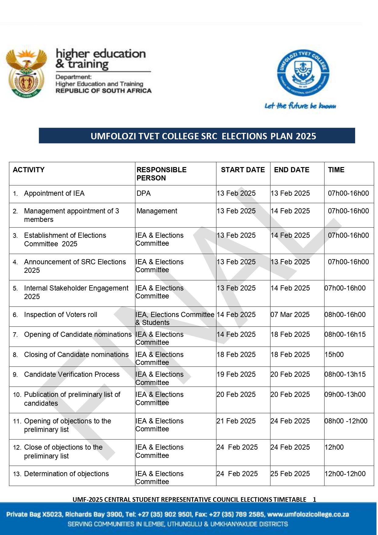 On 20 November 2024, the Deputy Minister of Higher Education and Training, Mr. Buti Manamela, officially launched and handed over the Ingwavuma Skills Development Centre to uMfolozi TVET College. This Centre is a collaborative effort between the Department of Higher Education and Training (DHET) and the Construction Education and Training Authority (CETA). It is well-equipped…